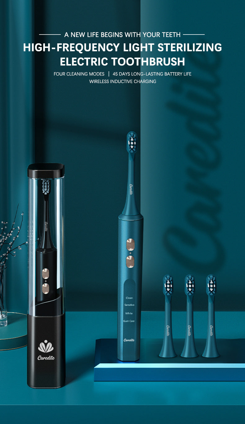 Caredite Newest Travel Electronic Toothbrush With Ultraviolet Disinfection Function Case Suit, 4 Cleaning Modes With 3 Power Model, 45 Days Long Lasting Battery Life