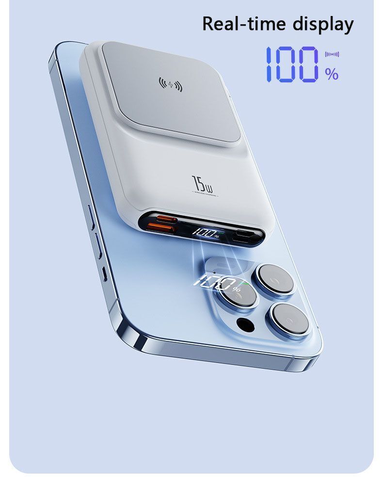 ⚡[New update Wireless Quick Charging]Wireless Magnetic powerbank is compatible with iPhone 12/13/14 series. Wireless fast charging up to 22.5w. It also supports USB-A 22.5W/USB-C 20W wired output. Both wired and wireless charging can be done simultaneously. With excellent magnetic charging efficiency, it will bring you a comfortable charging experience.