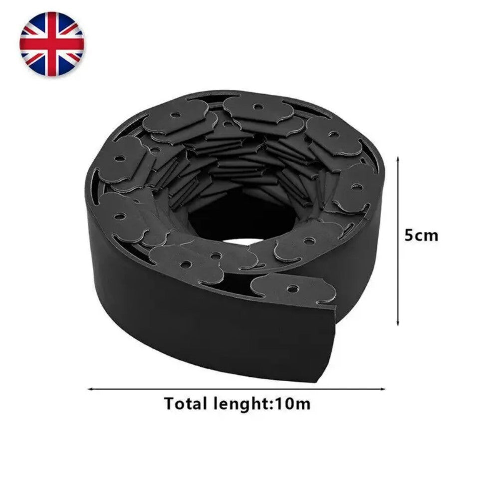 Create a beautiful, professional-looking garden with this 10M Plastic Garden Edging Kit, complete with 30 sturdy spikes for easy installation. Made from durable PE material, this flexible garden border is perfect for lawns, pathways, flower beds, tree rings, and driveways. Its heavy-duty construction ensures your garden stays neat and defined year-round.